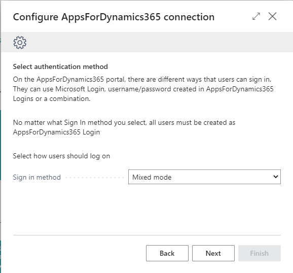 There are three different methods of authentication available for the user to use to sign in to AppsForDynamics365. Microsoft login, username and password created in AppsForDynamics365, or a combination of the two.